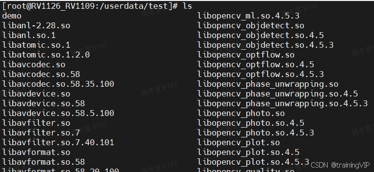 - 将生成的可执行文件demo以及依赖的动态库全部拷贝到rv1126中既可(我个人是把ffmpeg、x264以及opencv,交叉编译生成的lib文件夹下所有的动态库都拷贝到1126中)