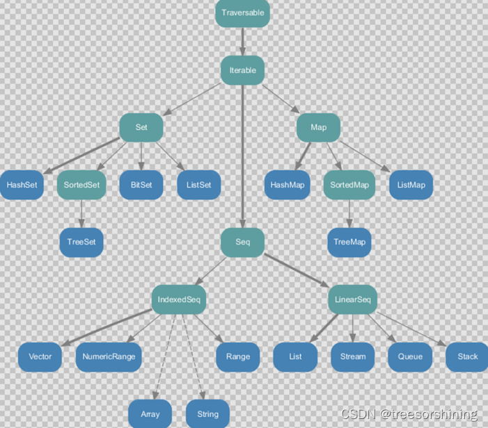1)Scala 的集合有三大类:序列 Seq、集 Set、映射 Map,所有的集合都扩展自 Iterable特质。