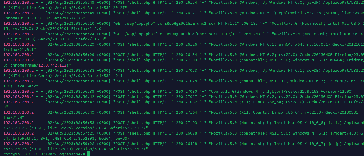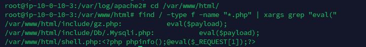 要查找到一个免杀马的路径,由于做了免杀,我们使用 find 命令和 grep 也没有找到,所以就只能对于 apache2 日志进行分析
