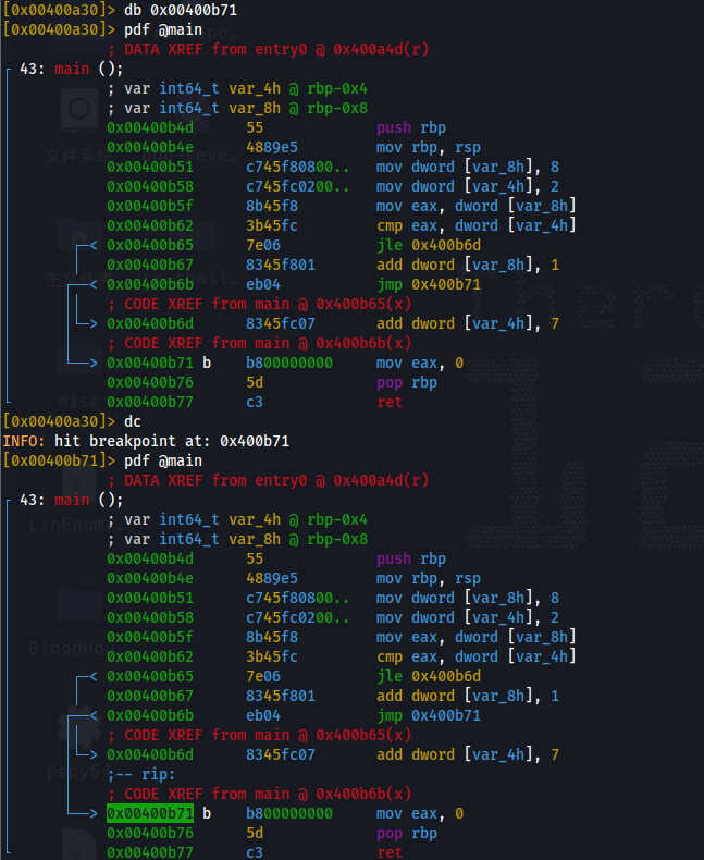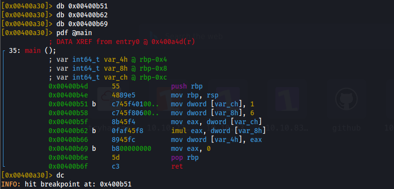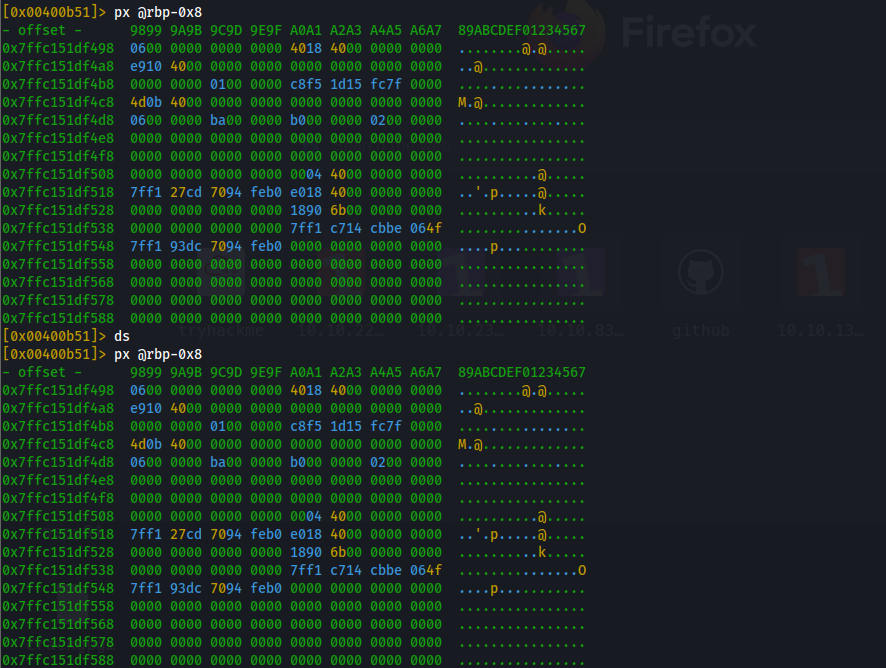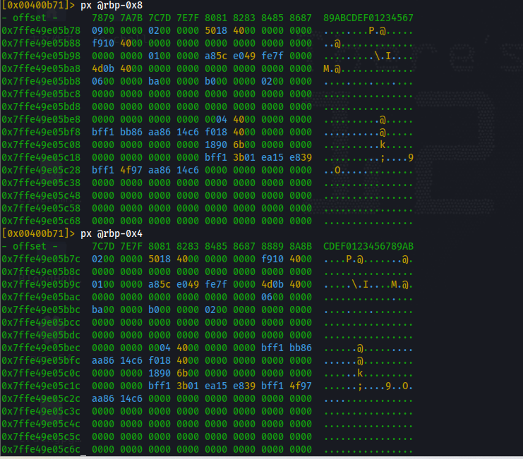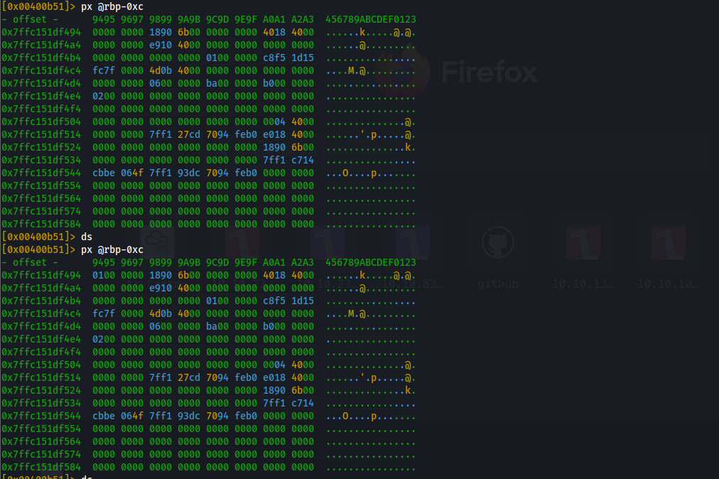 在函数最后下一个断点,然后 dc 运行到断点位置,然后使用 px 查看内存位置的数据,就可以拿到对应的结果了