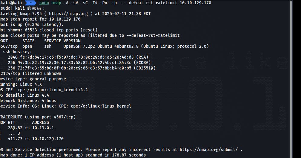 首先使用 nmap 扫描端口,找到 ssh 开放的端口