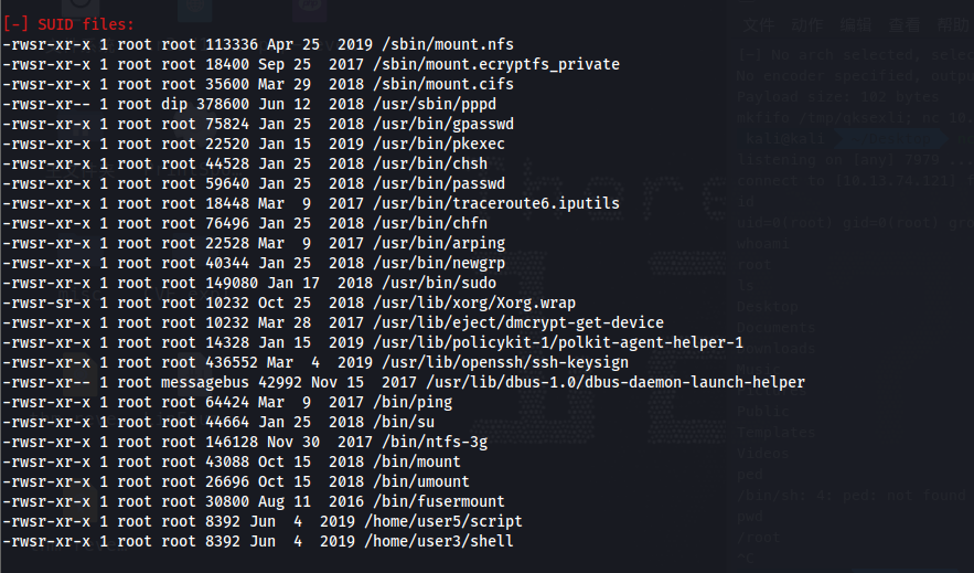 - SUID(执行时设置所有者用户 ID)是赋予文件的一种特殊权限。它允许文件以所有者的权限运行。如果所有者是 root 用户,则文件以 root 权限运行。它可以帮助我们提升权限。