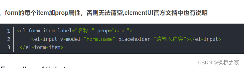 form 里面的 ref=“form” :重置这个表单