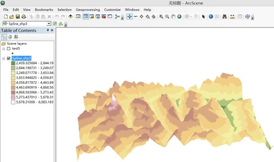 5、 等待插值分析完成后,ArcScene会自动加载结果图层: