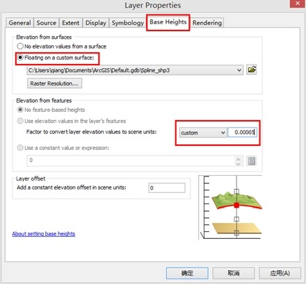 6、 然后我们对图层高程进行设置,以拉升显示,按照下图进行设置,然后点【确认】: