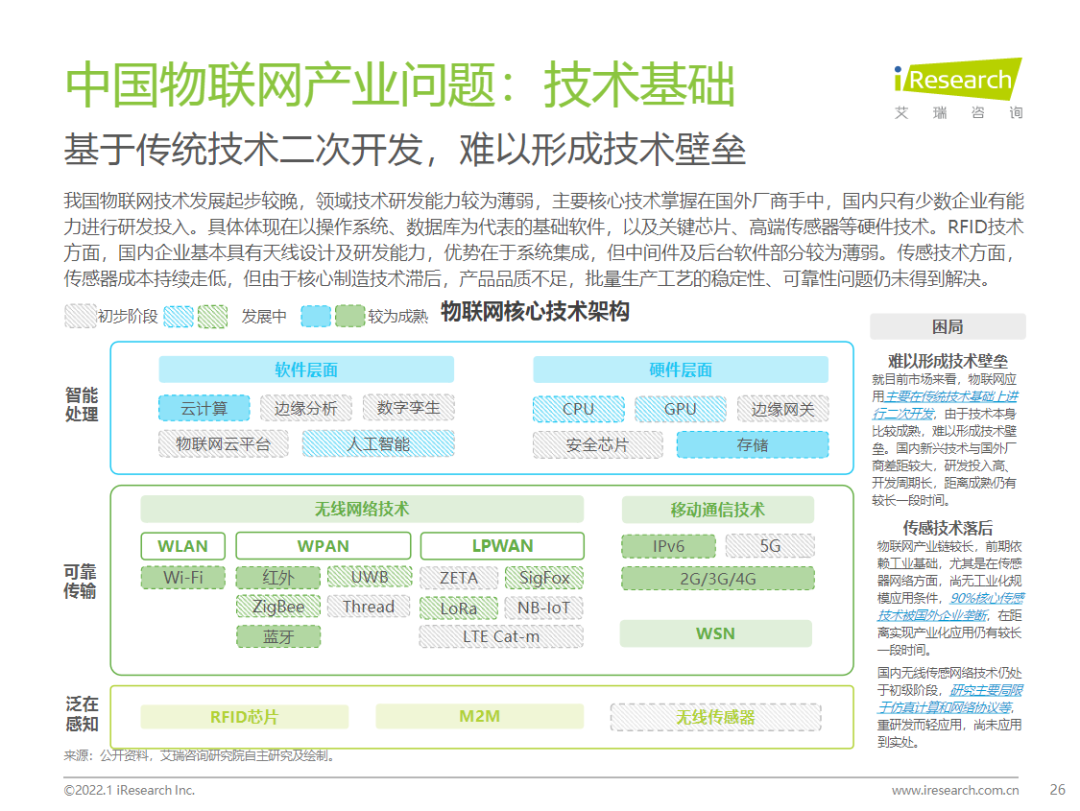 报告意在分析当代物联网的发展瓶颈,打破桎梏,为企业与公共主体提供未来发展方向的参考与寻求突破的新思路,加速物联网的渗透赋能。