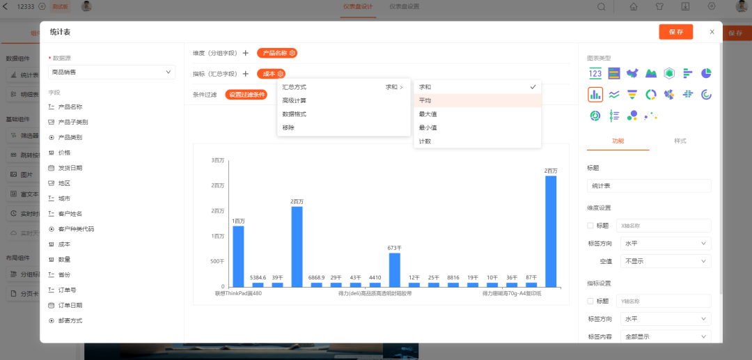 同时「汇总方式」支持设置「指标」作为统计量的汇总方式设置。