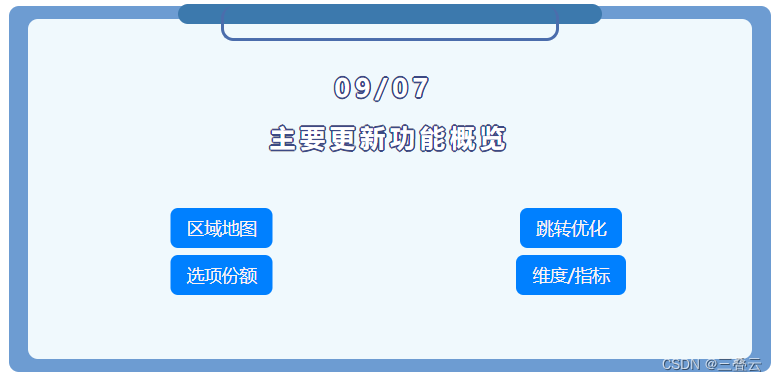 本次更新主要针对数据可视化和流程管理方面进行优化。区域地图视图样式在不同尺寸下表现更佳,图表钻取和交互功能得到增强。消息中心的消息跳转体验提升,支持直接跳转到表单详情。表单设计中,选择类型组件新增选项份额设置,允许有限次数的选择。仪表盘设计中,统计表支持按维度值和指标排序,以及自定义排序、汇总方式和数据格式设置。此外,还增加了对流程日志记录、图表组件颜色配置、组件对齐方式设置等功能。营销系统新增事件属性,流程动态结束节点展示问题也得到优化。