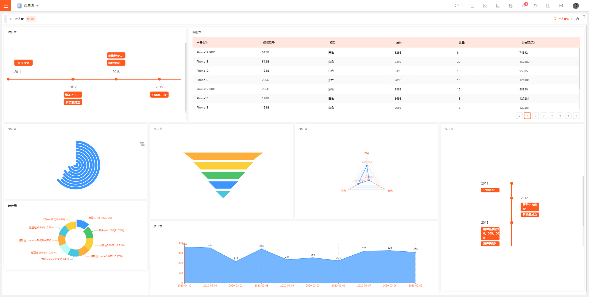 仪表盘中提供了多种样式的图表: