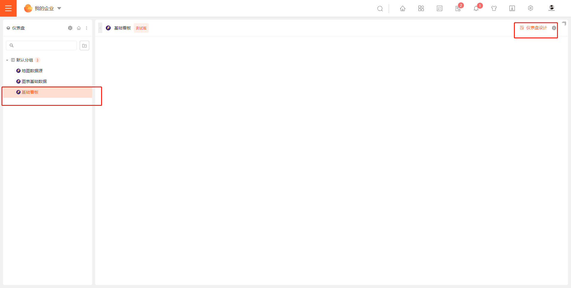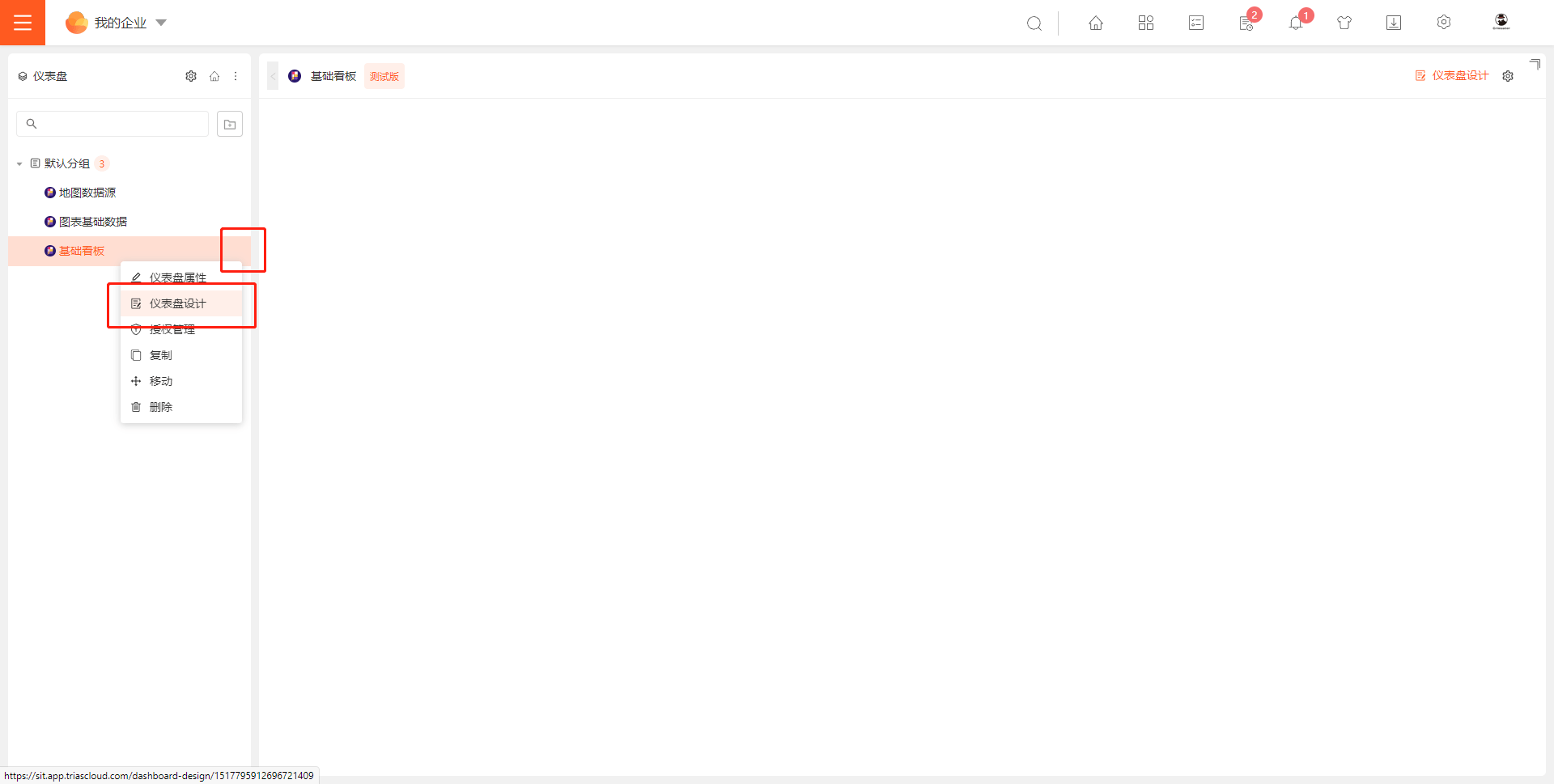 入口二:选中需要编辑的仪表盘,在界面右上角点击「仪表盘设计」,如下图所示: