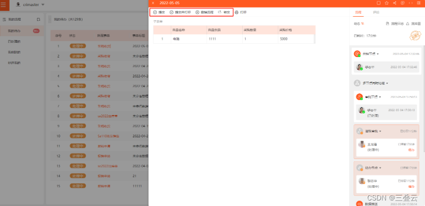 - 转交:将该条待办数据转交给其他成员进行处理。