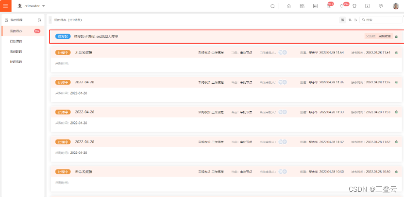 - 转交:将该条待办数据转交给其他成员进行处理;