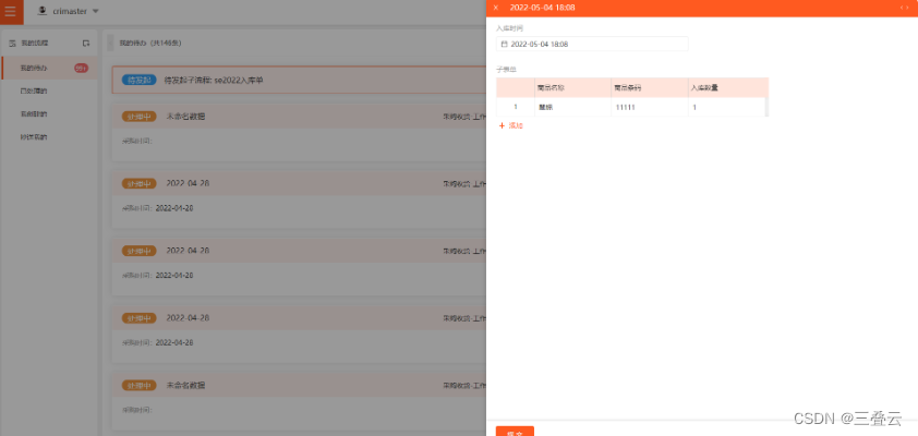 - 提交:填写表单内容后,保存并将数据流转到下一节点;