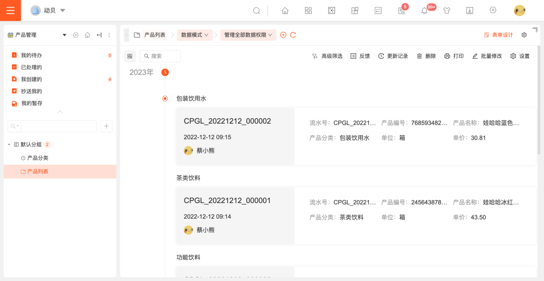 时间线视图是以表单中的时间字段作为维度的陈列数据依据,对于高时间属性的数据往往对该类型视图依赖度较高。