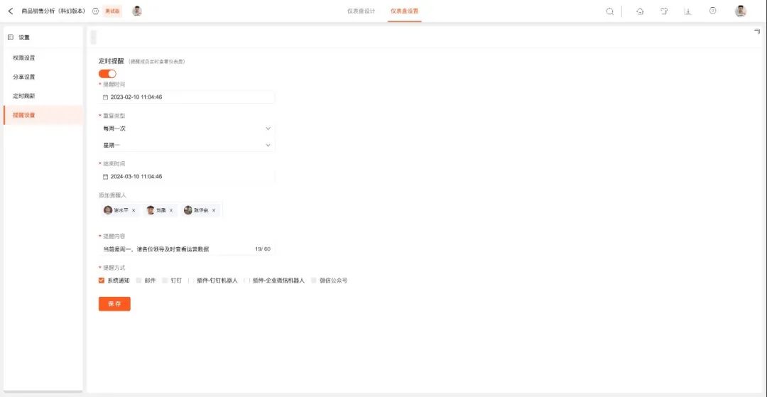 仪表盘设置中新增「分享设置」,支持通过链接形式提供给外部人员查看该仪表盘。