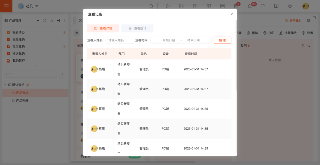 表单设置以及数据详情中新增「查看记录」,用于记录用户在对应表单以及表单数据的访问次数、访问时间。