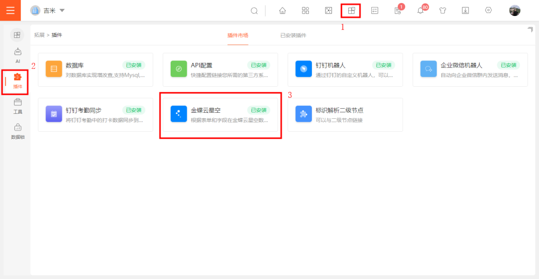 用户可通过配置「金蝶云星空」插件,就可以实时获取「金蝶云星空」的数据,同时支持回填数据至金蝶系统内。