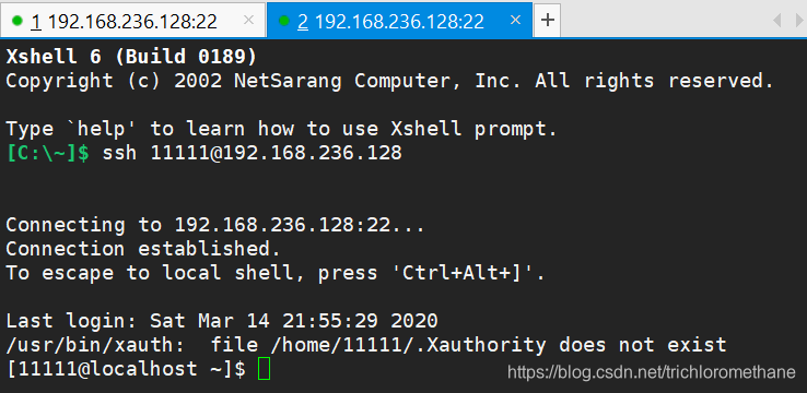 此时远程登录普通用户11111成功!