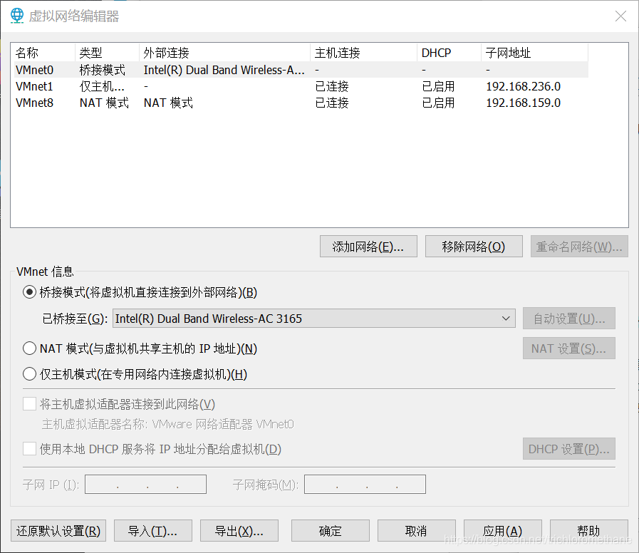 3.2 更改【虚拟网络编辑器】:桥接模式