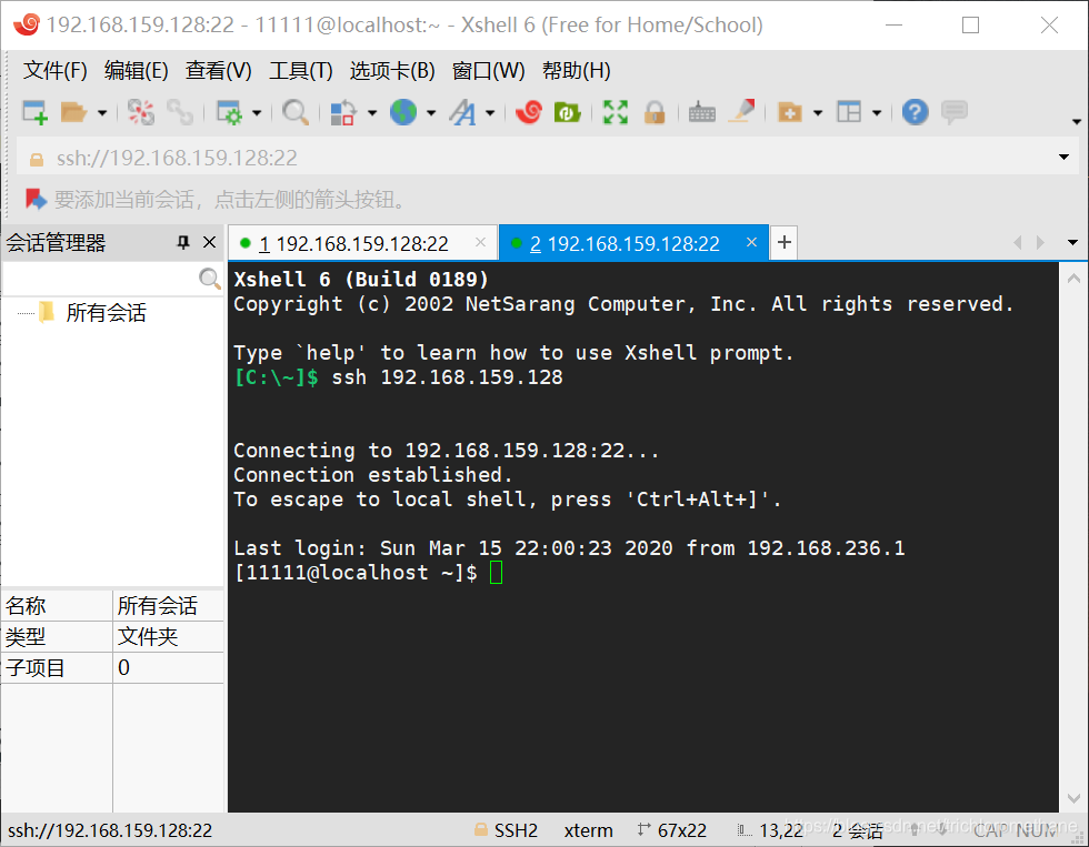 远程登录普通用户11111也成功!