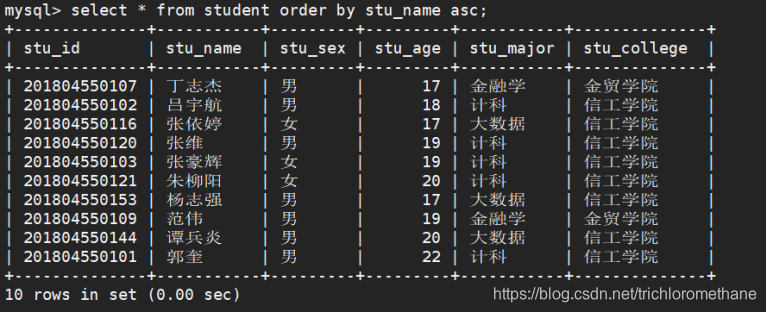 | stu_id | stu_name | stu_sex | stu_age | stu_major | stu_college |
