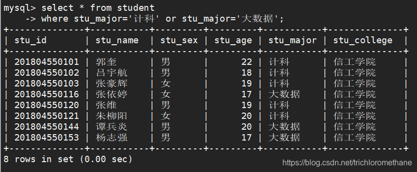 `stu_major` char(9) DEFAULT NULL COMMENT '专业',