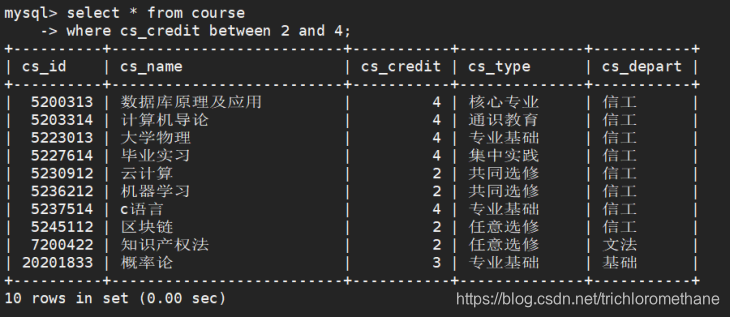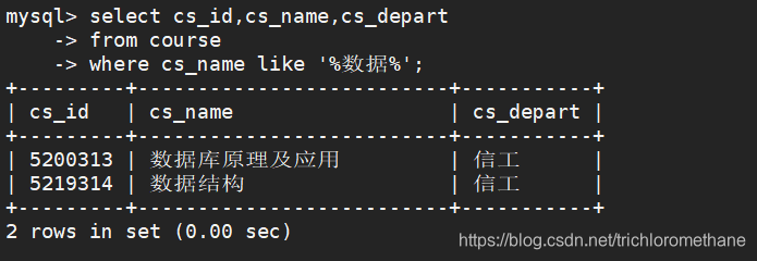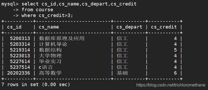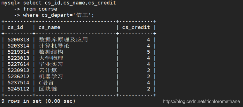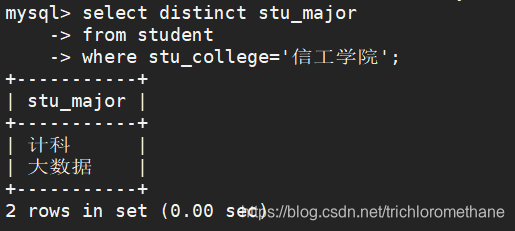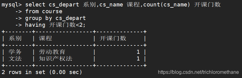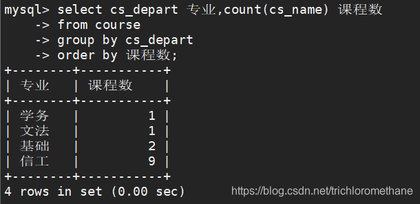 mysql> select cs_depart 专业,count(cs_name) 课程数