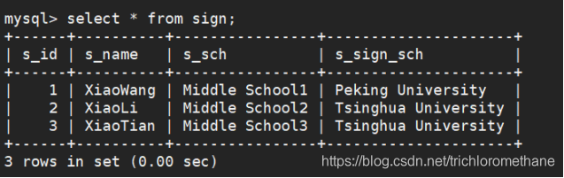 (2,'XiaoLi','Middle School2','Tsinghua University'),