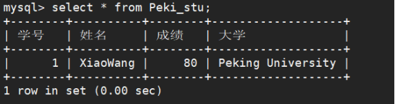 VALUES(1,'XiaoWang','Middle School1','Peking University'),