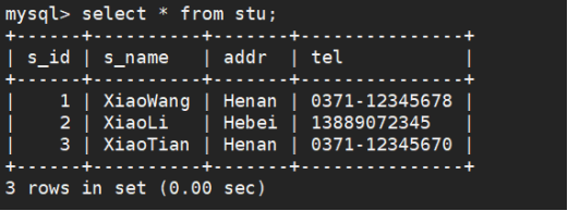 VALUES(1,'XiaoWang','Henan','0371-12345678'),