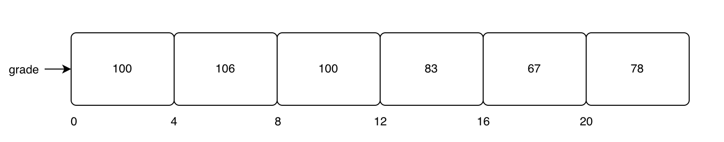 grade[1]=&grade[0]+4 grade[2]=&grade[0]+8