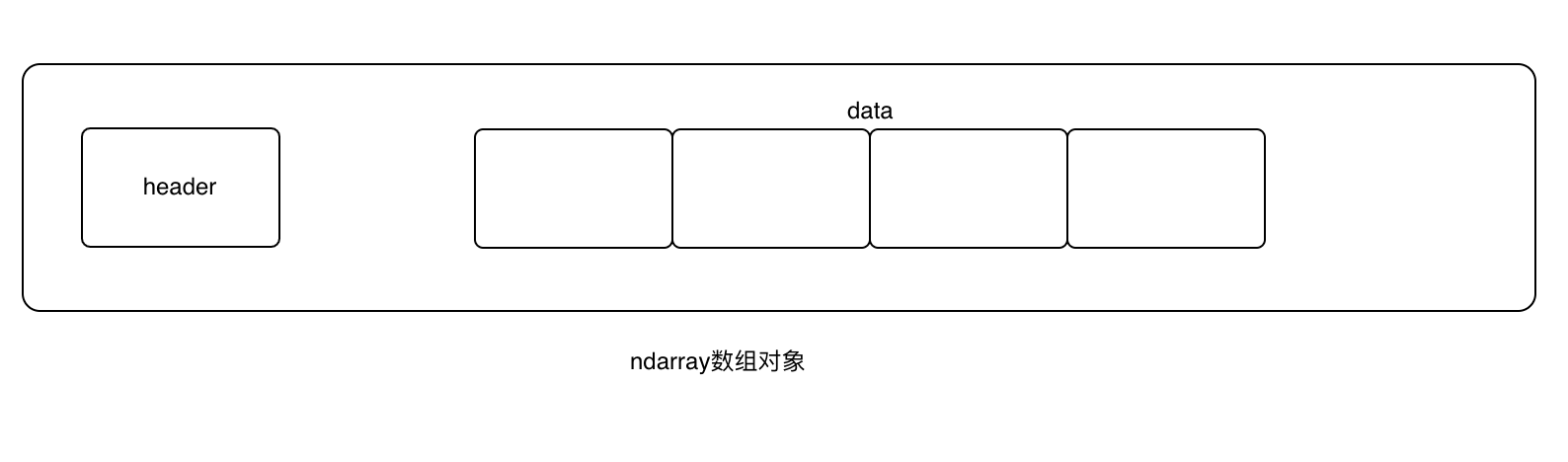 ndarray 对象分为两个部分:一个部分是 header、一个是 data。header 部分可以理解为数组属性块,里面有着 ndarray 数组对象所需要的一些属性,比如该数组的步长、数组的形状、数组中数据的类型,等等。data 部分就可以理解为 C 语言中的数组了,存储的是数据。