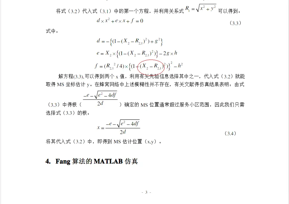 发表在中国科技论文在线的《蜂窝网络TDOA定位方法的Fang算法研究及仿真》(百度链接),提供了很好的Fang算法参考,但论文中有两处错误,着实也浪费人不少时间。