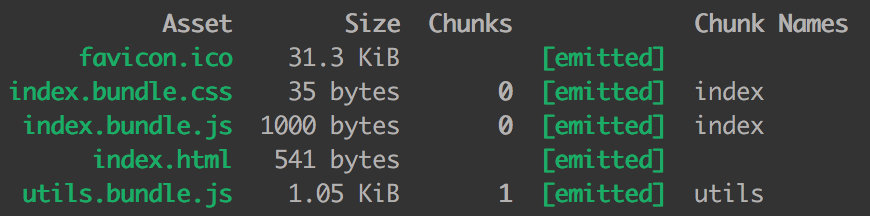 我们可以看出,index.css 和 common.js 在 index.js 中被引入,打包生成的 index.bundle.css 和 index.bundle.js 都属于 chunk 0,utils.js 因为是独立打包的,它生成的 utils.bundle.js 属于 chunk 1。