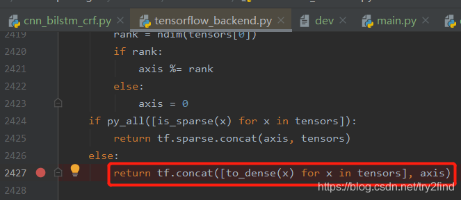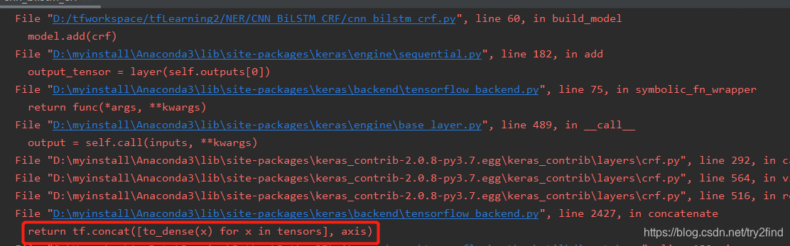 我们仔细看报错语句,可以看到真正报错的语句为:return tf.concat([to_dense(x) for x in tensors], axis)