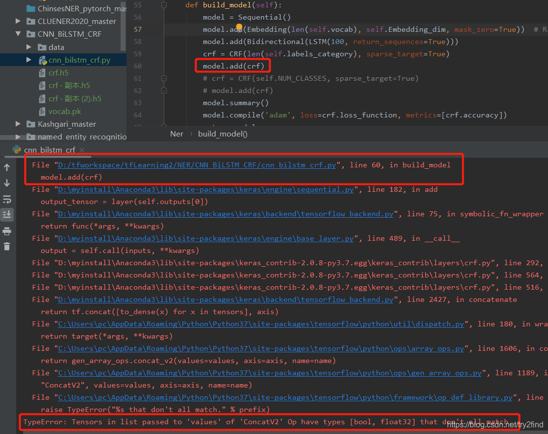 本文详细解析了在建立NER模型时遇到的TypeError,深入分析了问题根源在于concatV2操作接受的不同类型张量,并给出了修改mask_zero参数的解决方案。