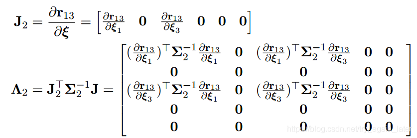 雅克比J和信息矩阵H的稀疏性:由于每个残差只和某几个状态量有关,因此,雅克比矩阵求导时,无关项的雅克比为 0。