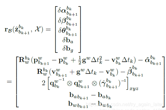 目标函数:visual给出的相邻帧间的旋转应等于IMU预积分的旋转值Q之间的差。![]()