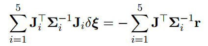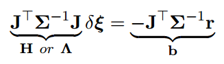 基于高斯牛顿的非线性优化理论可知,H*delta_x=b可以写成: