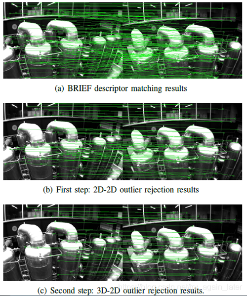 1、检测到回环时,通过BRIEF描述子匹配找到对应关系。但是直接的描述子匹配会导致很多外点。