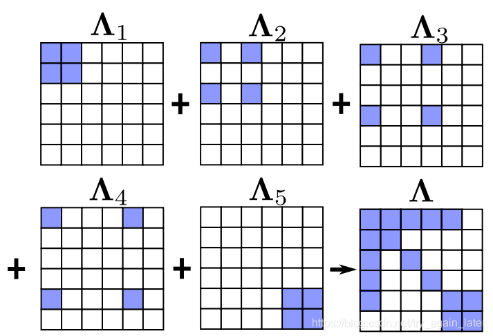 将五个残差的信息矩阵加起来,得到样例最终的信息矩阵 Λ, 可视化如下