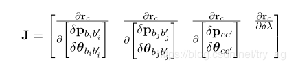 在视觉约束和IMU约束中,基本思想是找到优化状态向量,然后通过视觉残差和IMU测量残差分别对状态向量求导,获得视觉和IMU预积分的Jacobian和协方差矩阵。