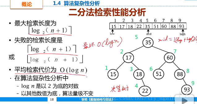 常数阶;二分法:对数阶;for循环:线性阶;两个for循环:平方阶