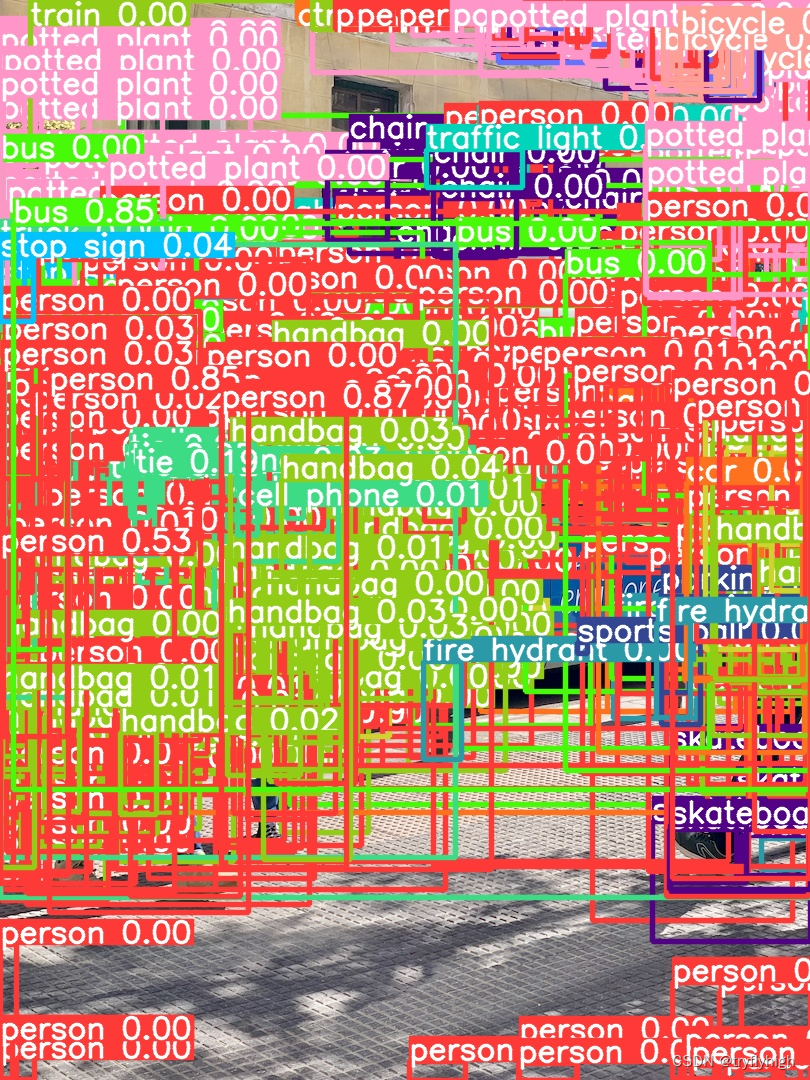 iou-thres 表示交并比阈值。IOU 值=预测框大小∩真实框大小 / 预测框大小∪真实框大小(预测框与真实框的交集与并集的取值)。当值过大时容易出现一个目标多个检测框,值过小容易出现检测结果少的问题
