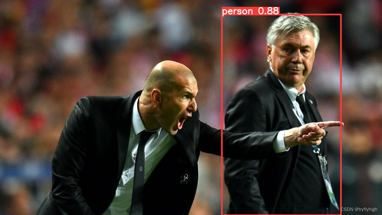 指定识别 classes 0(只识别 person),在终端输入命令 python detect.py --class 0 运行程序,结果显示如下