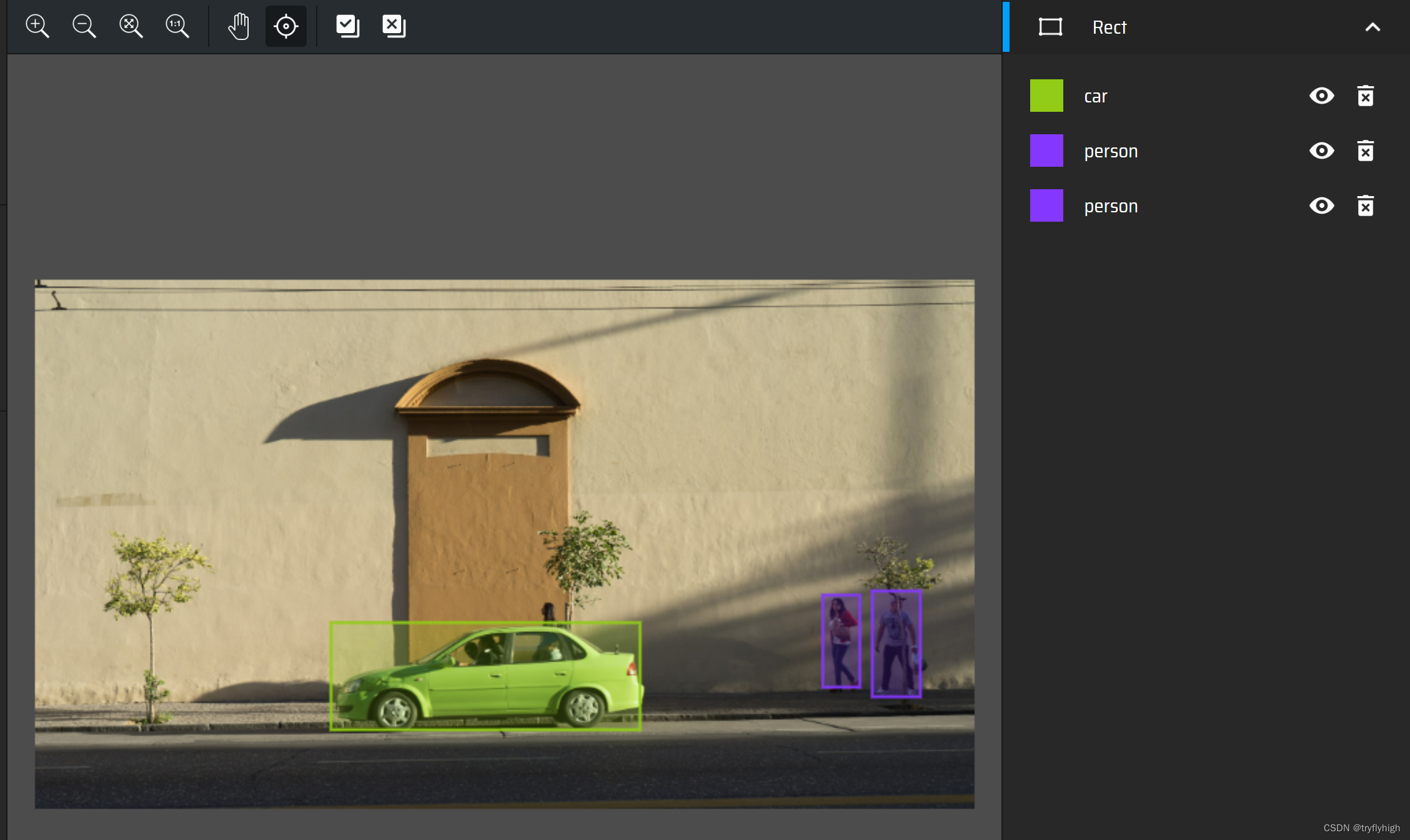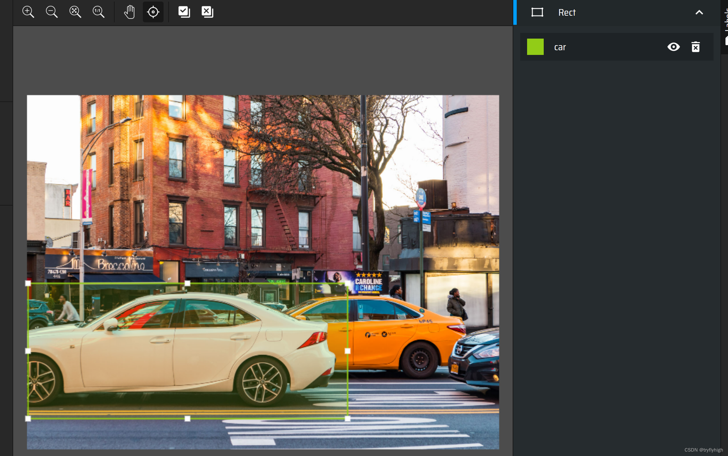 选择要标注的物体进行标注,如下选择汽车,并给与标签car