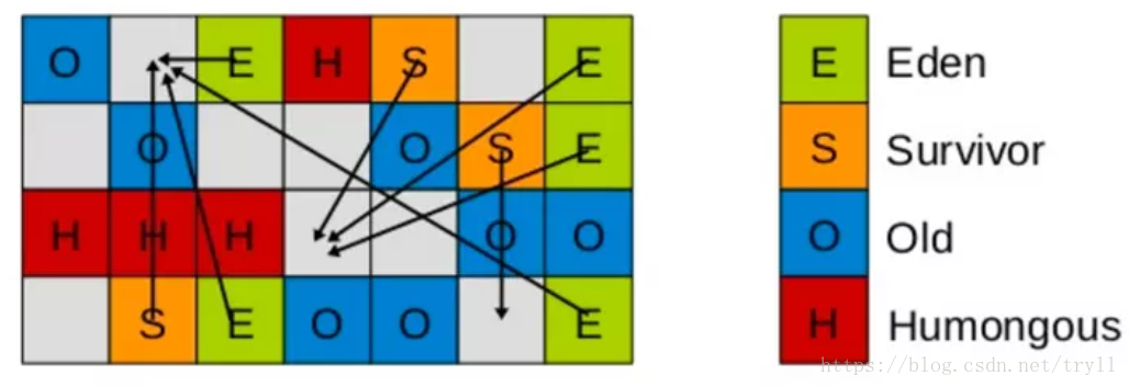 取而代之的是,G1算法将堆划分为若干个区域(Region),它仍然属于分代收集器。不过,这些区域的一部分包含新生代,新生代的垃圾收集依然采用暂停所有应用线程的方式,将存活对象拷贝到老年代或者Survivor空间。老年代也分成很多区域,G1收集器通过将对象从一个区域复制到另外一个区域,完成了清理工作。这就意味着,在正常的处理过程中,G1完成了堆的压缩(至少是部分堆的压缩),这样也就不会有cms内存碎片问题的存在了。