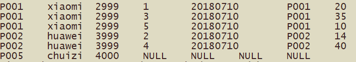 select * from product_t right join order_t on product_t.pid=order_t.pid;