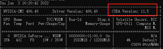 CUDA version 表示最高支持的CUDA 版本,cuda的版本要与TensorFlow的版本相对应